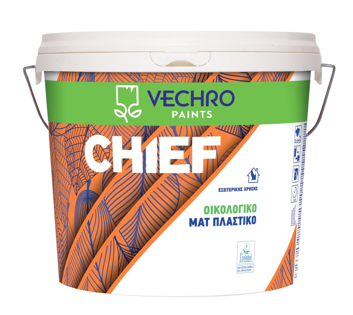 • Το οικολογικό CHIEF Πλαστικό  συνδυάζει μεγάλη καλυπτικότητα και λευκότητα, εύκολη και ευχάριστη εφαρμογή λόγω της χαμηλής οσμής του και της απουσίας αμμωνίας.